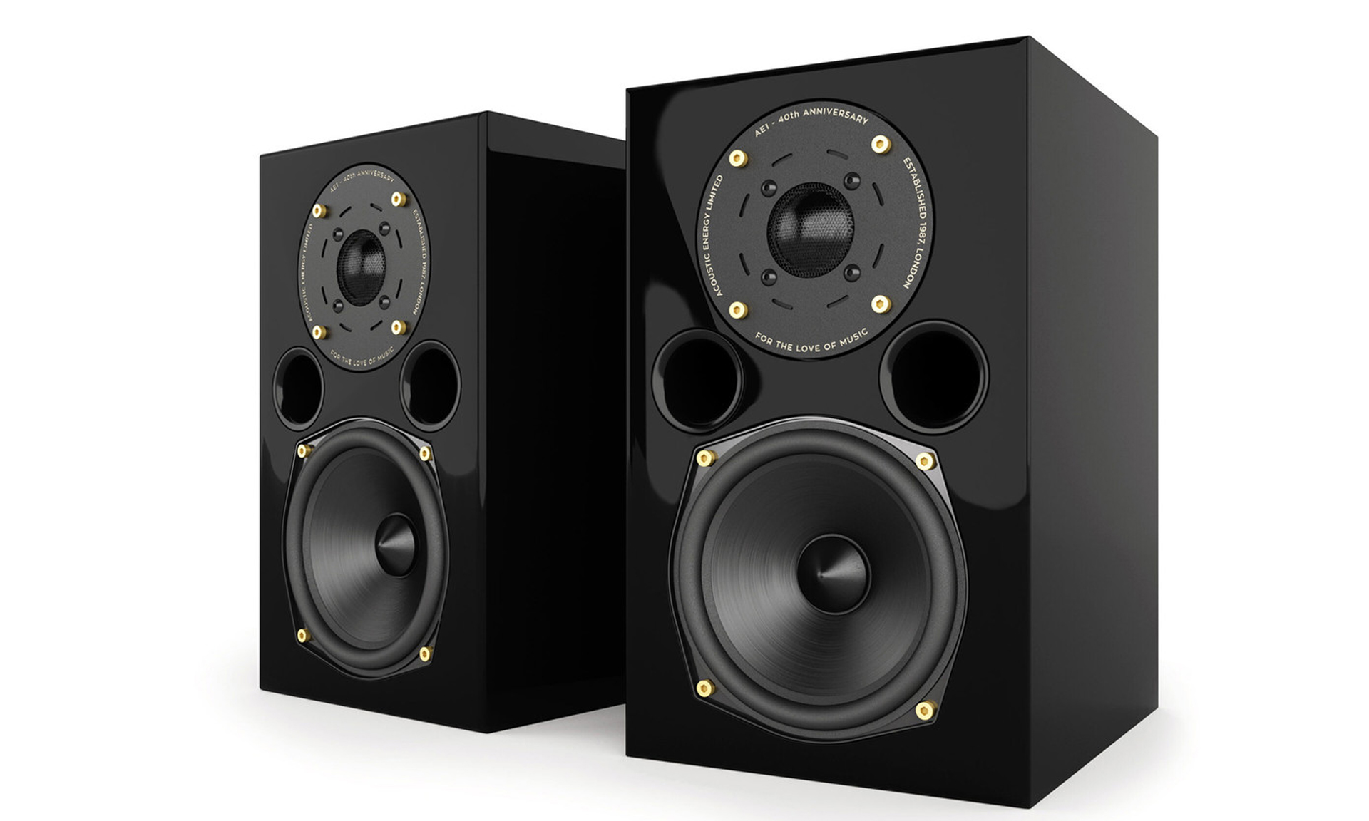 disponibles en nogal brillante y negro brillante, los altavoces AE1 40th Anniversary ofrecen un acabado superior al negro mate de calidad de estudio del modelo original. Las rejillas de perfil delgado y fijación magnética también le dan un estilo más discreto.