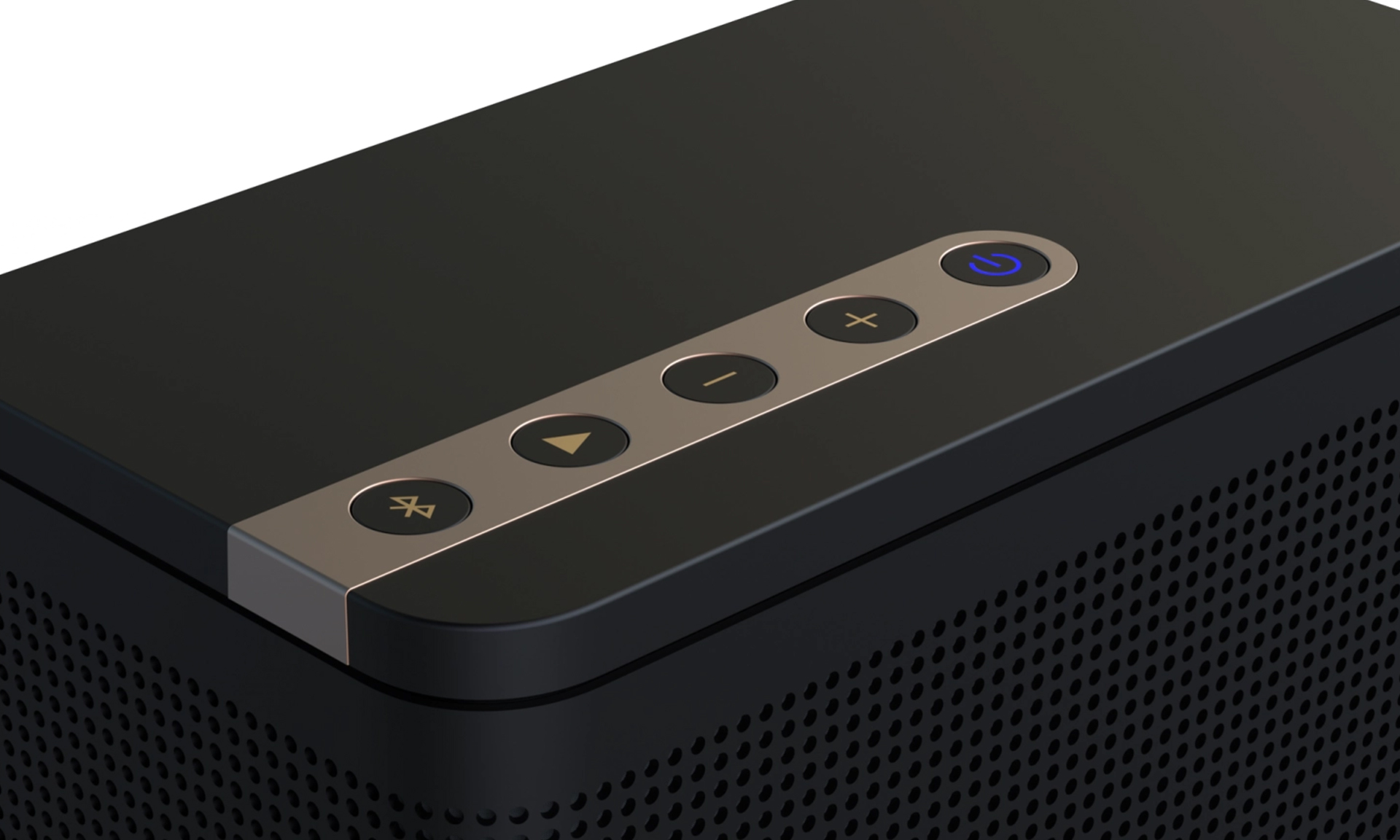 Duradero, refinado y diseñado para moverse contigo. Desde las placas superior e inferior hasta la rejilla, los controles y el panel trasero, el exterior de NAVA está fabricado íntegramente en aluminio prensado. Frío al tacto y perfectamente equilibrado, se siente sólido en la mano, como un instrumento de precisión. No es plástico que simula ser metal, es auténtico.
