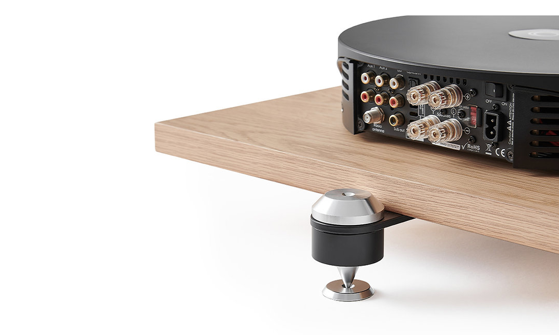 Cada módulo está equipado con púas y contrapúas para eliminar vibraciones no deseadas. Es ideal para albergar cualquier equipo Hi-Fi, desde amplificadores hasta tocadiscos de vinilo.