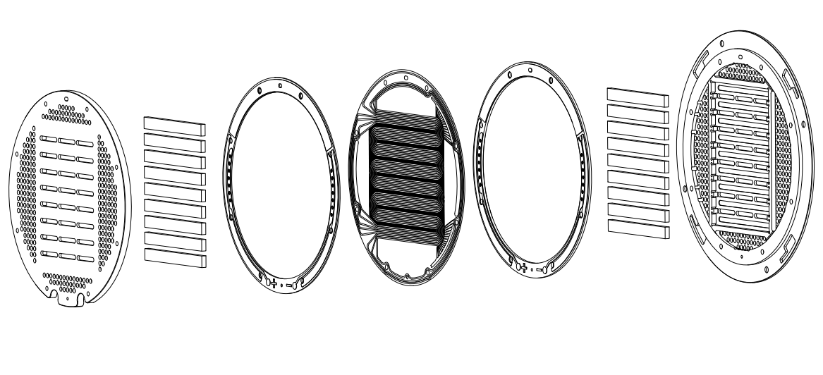 La carcasa del transductor está hecha de material de aluminio de aviación con mecanizado CNC preciso. Después de múltiples experimentos, la dimensión y la ubicación de cada orificio es de alta precisión. Cada fila de orificios es responsable de la distribución uniforme del sonido en cada frecuencia, lo que garantiza que el diafragma pueda hacer la misma vibración para la misma frecuencia. Esto también asegura la consistencia de la producción y la calidad del sonido de cada auricular.