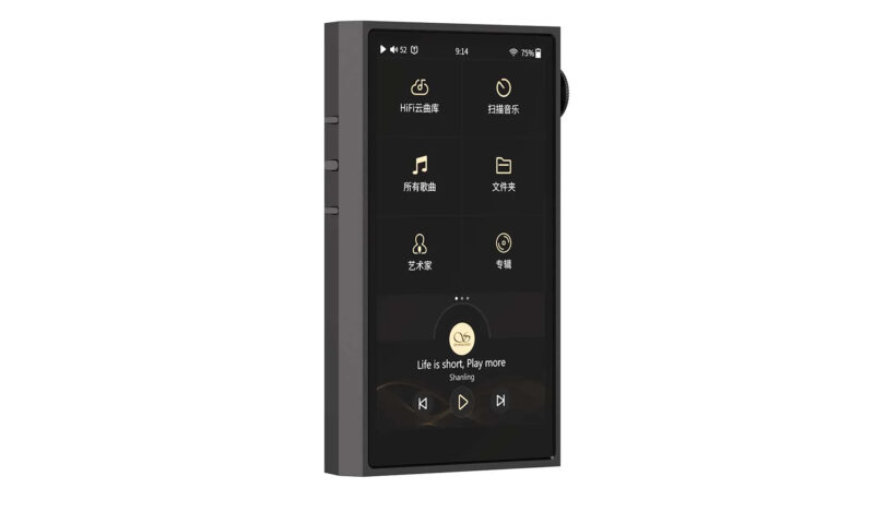 El Shanling M5 Ultra adopta un diseño moderno lleno de formas irregulares y bordes pronunciados, construido sobre aluminio y disponible en acabados negro y plateado. Utiliza la última generación del sistema operativo interno MTouch OS, una interfaz sencilla y fácil de usar.