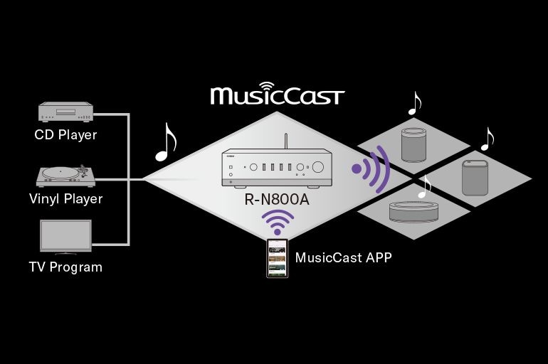 Desde el audio que ha almacenado en su PC o en una unidad de red hasta discos de vinilo y la TV, el receptor estéreo R-N800A se encarga de todo, brindándole un sonido superior y aprovechando todo el esplendor sonoro inherente a todo su sistema de entretenimiento.